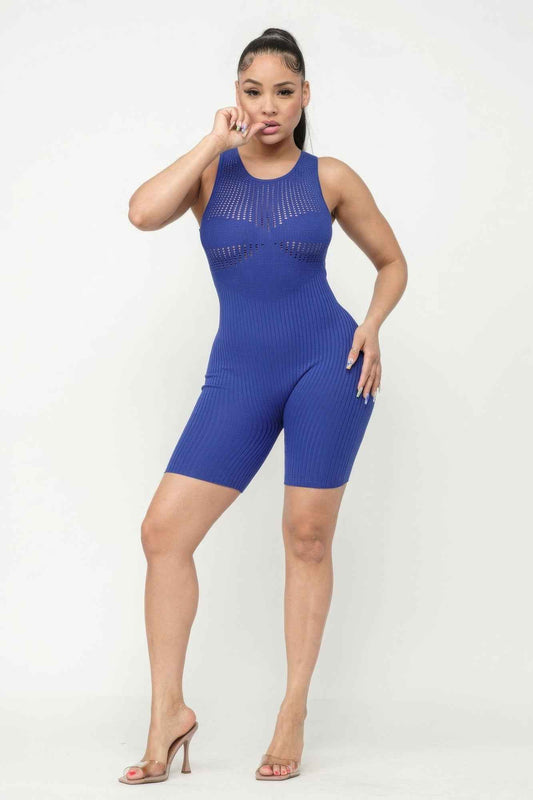 Casual Solid Halter V Neck Ribbed Bodycon Romper