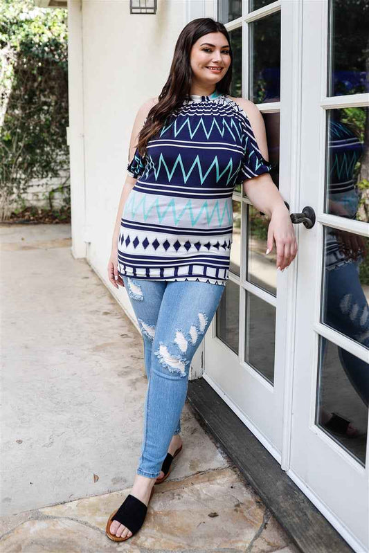 Plus Size Plus Polka Dot Cold Shoulder Short Sleeve Back Self-tie Top – Stylish & Comfortable