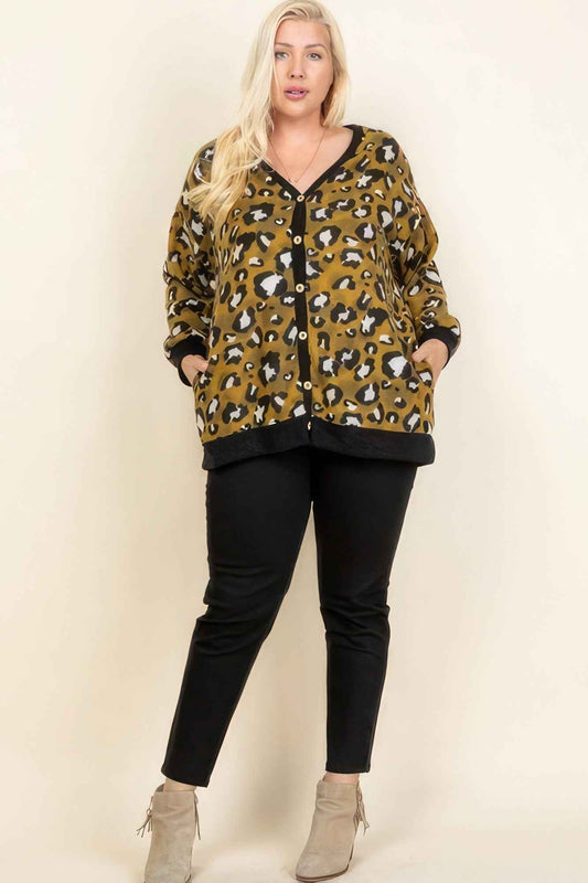 Plus Size Cozy Animal Mir Print With Brush Button Up Cardigan – Stylish & Comfortable