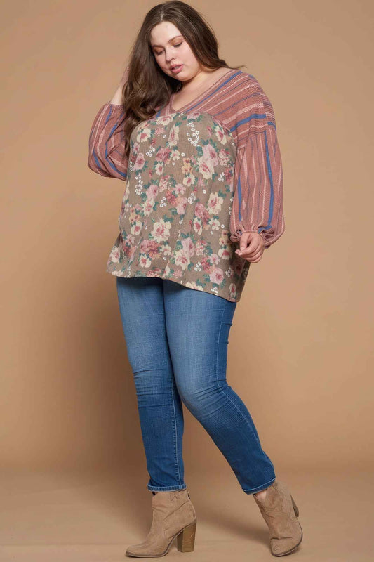 Plus Size Floral Printed Knit Top – Stylish & Comfortable