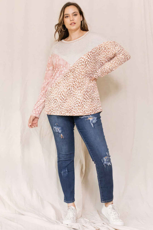 Plus Size Print Block French Terry Top – Stylish & Comfortable