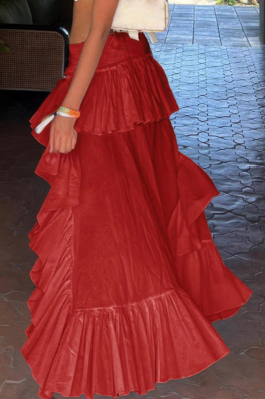 Solid Low Ruffle Hem Egirl Goth Tiered Midi Skirt