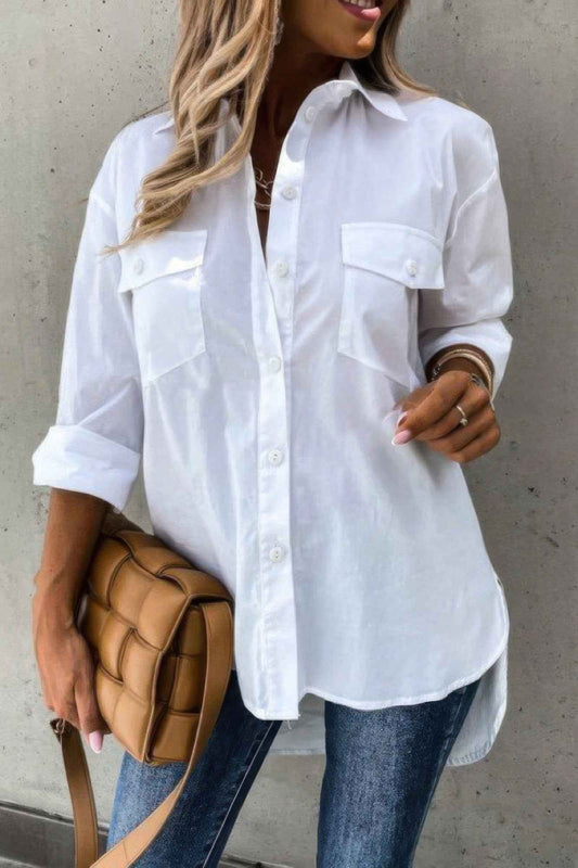 V Neck Solid Lace Splicing Button Fitted Shirt