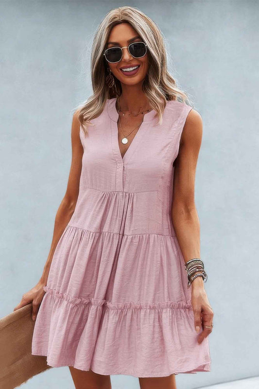Solid V Neck Flat Collar Tiered Shift Dress – New Arrival Now Live