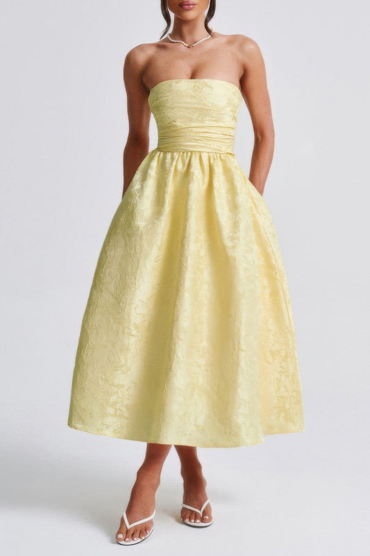 Solid V Neck High Waist Band Ruffle Hem Dress