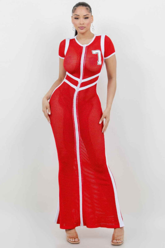 Solid Buckle Design Zipper Split Short Sleeve Dress