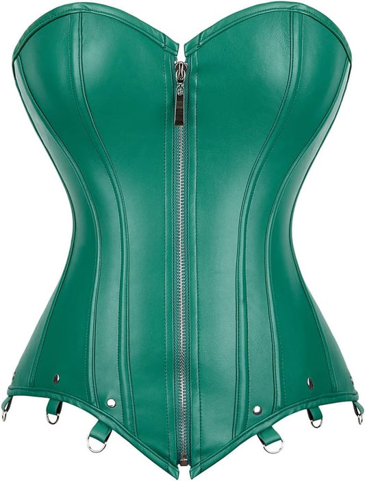 Kranchungel Corsets for Women Plus Size Faux Leather Steampunk Corset Top Zipper Bustier