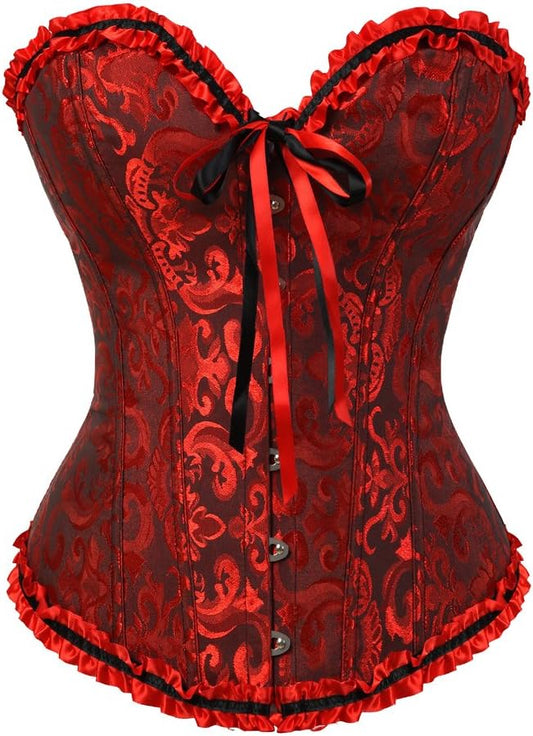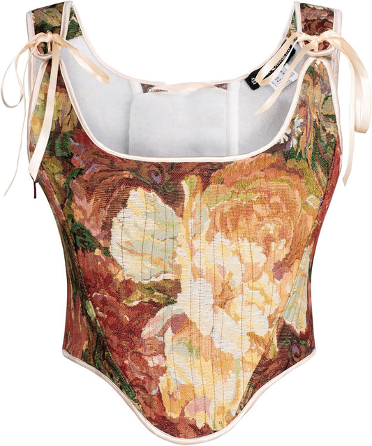 Scarlet Darkness Corset Tops for Women Renaissance Floral Overbust Boned Bustier Bodice