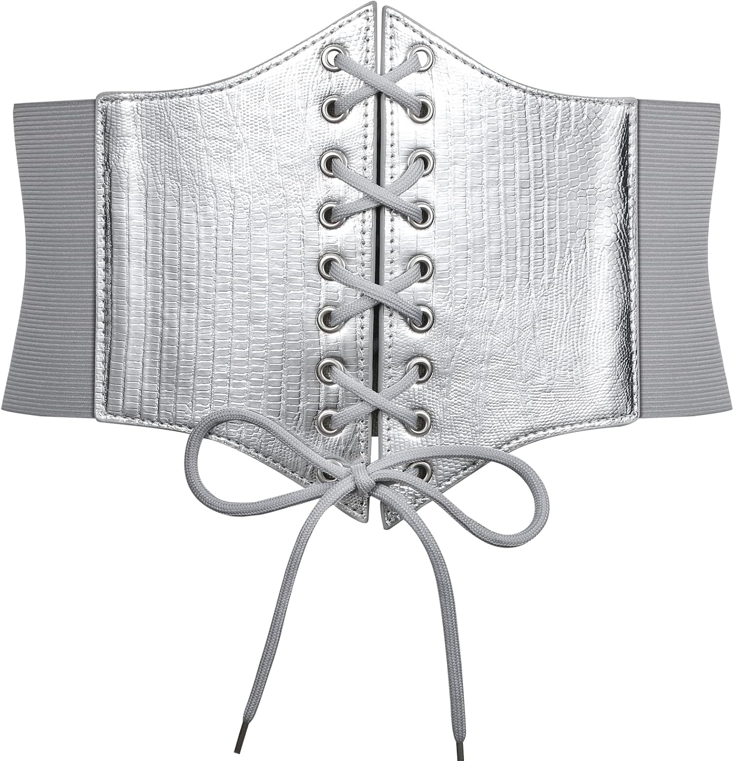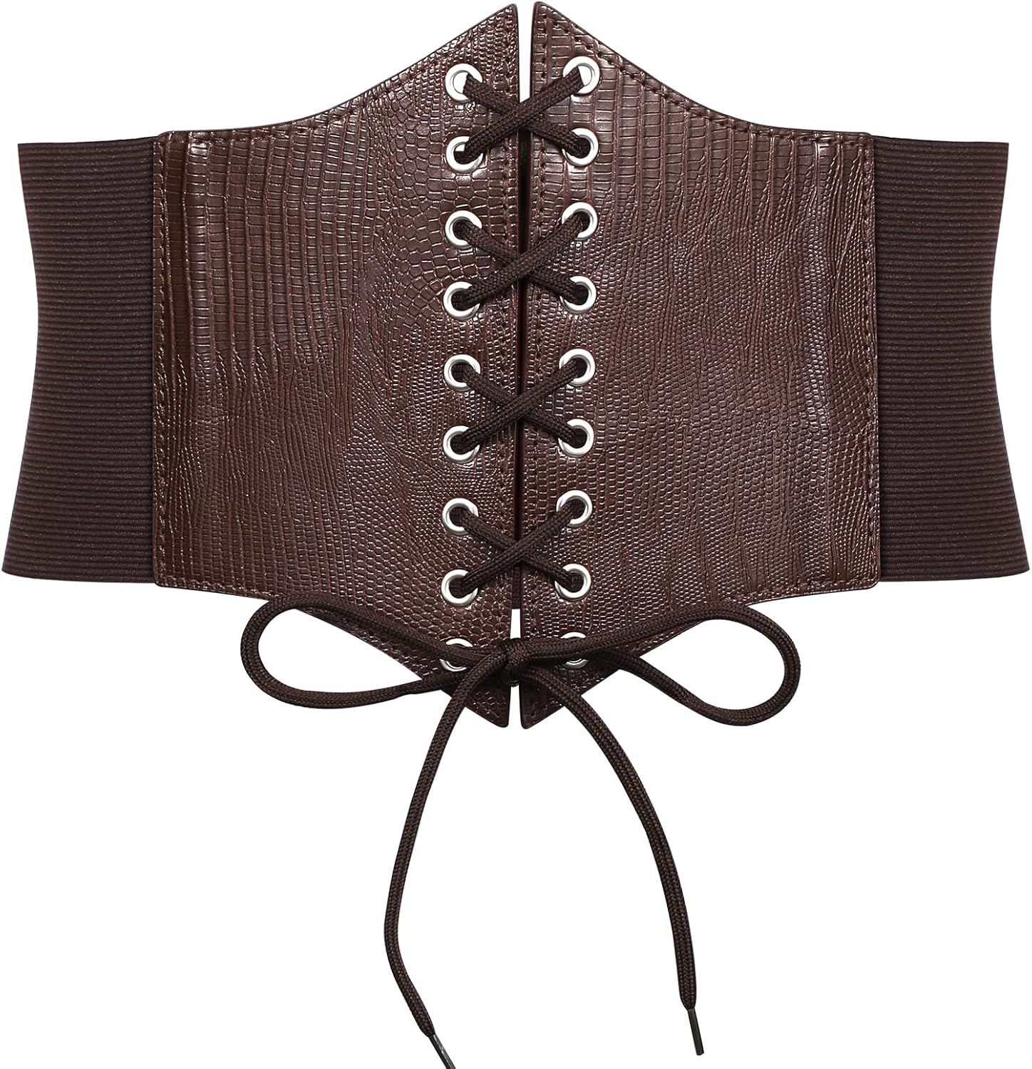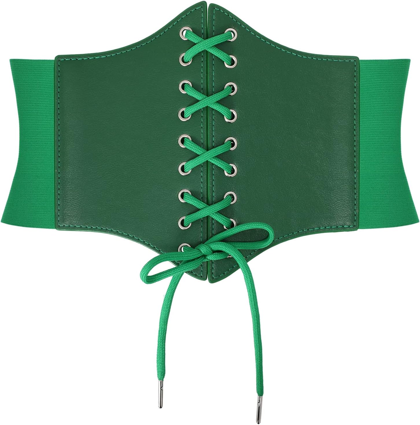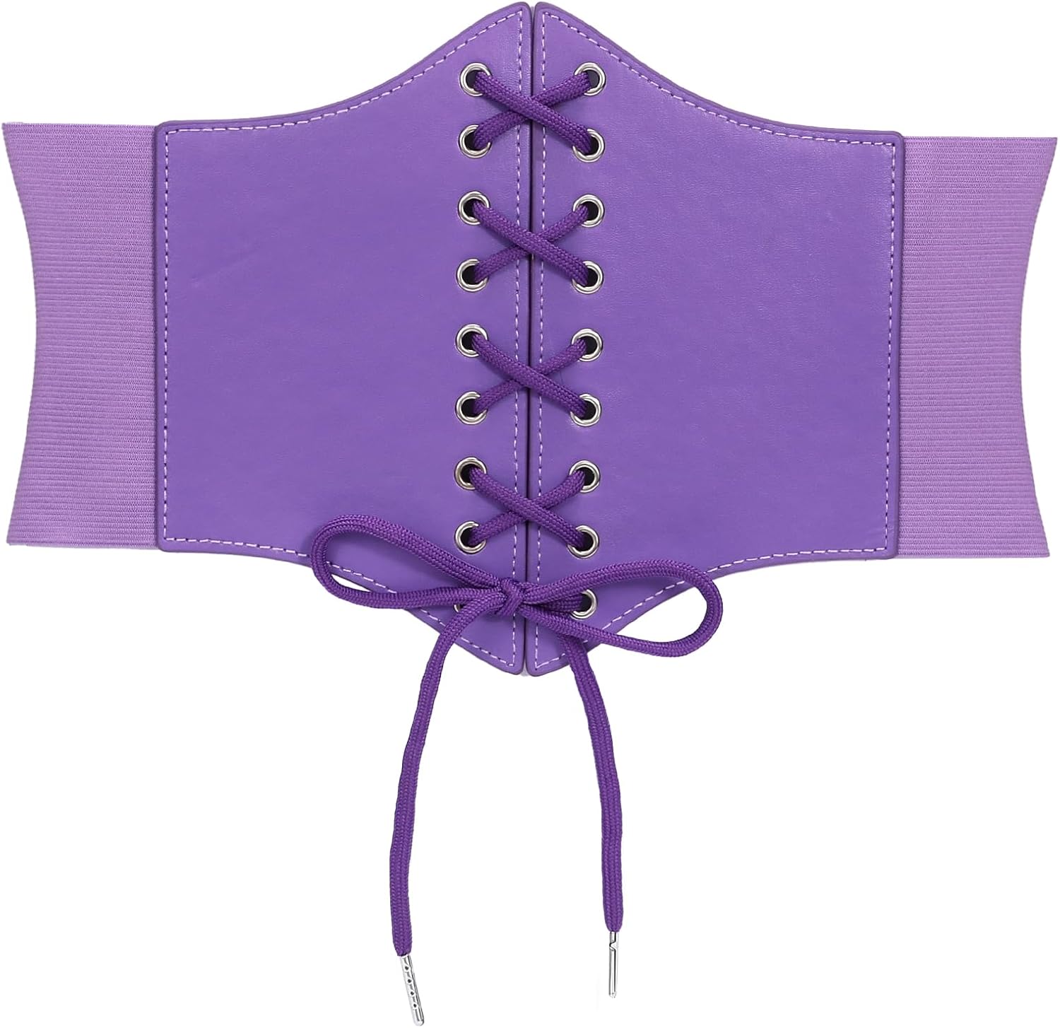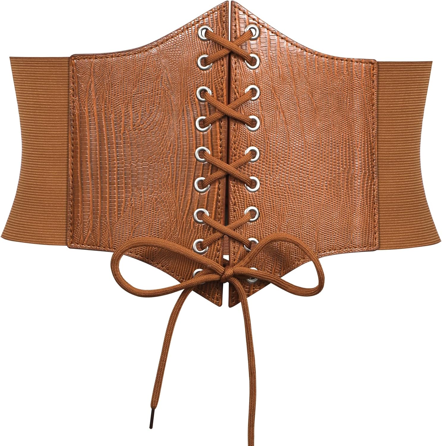 - CLASSIC DESIGN– Classic vintage style leather lace-up tied waspie corset belt, quality PU leather front sewed with well elastic wide band, fastened by 3 snap buttons, which is easy to put on and remove. This waspie corset belt is super comfortable to wear. Flatters your waist. The 7.6" width prevents dress belt from rolling up or rolling down in wearing.