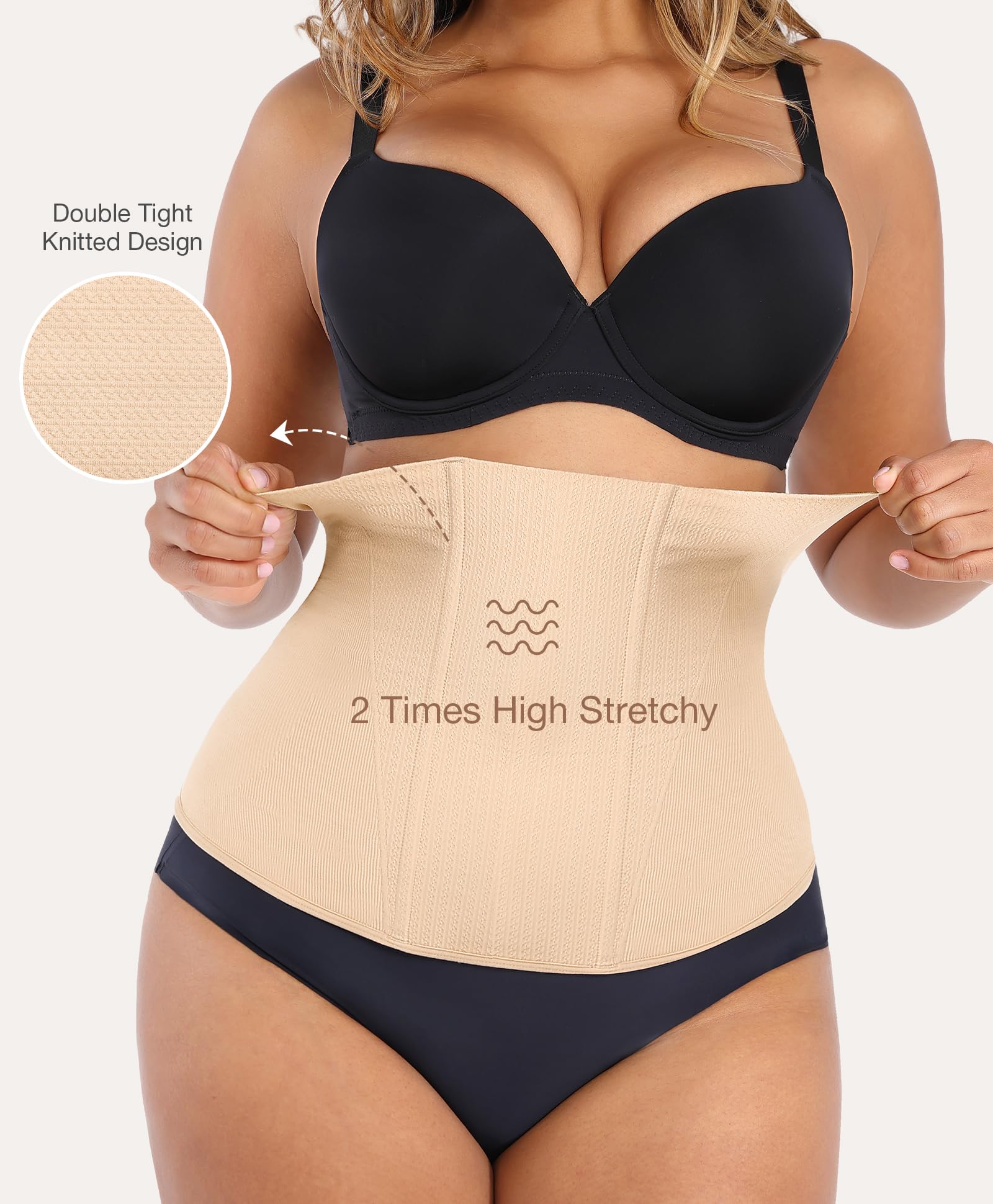 - Blended Fabric, Highly Elastic without Rolling. This postpartum tummy control waist trainer uses high quality blended materials, combined with exquisite craftsmanship on the edges, ensuring it does not slide or roll up during wear. Even with significant movements, it stays snug against the body, fearless of any challenge. Its excellent elasticity makes every stretch a pleasure.
