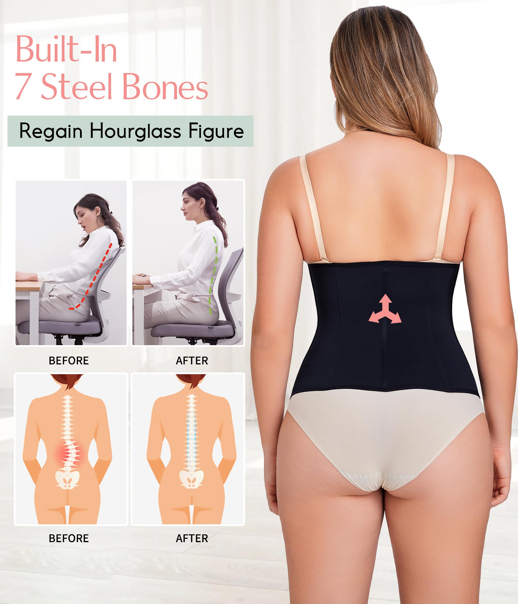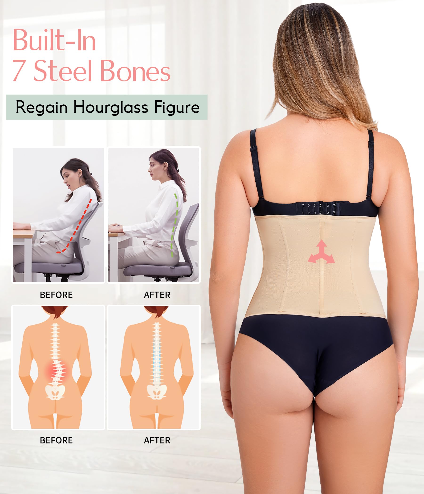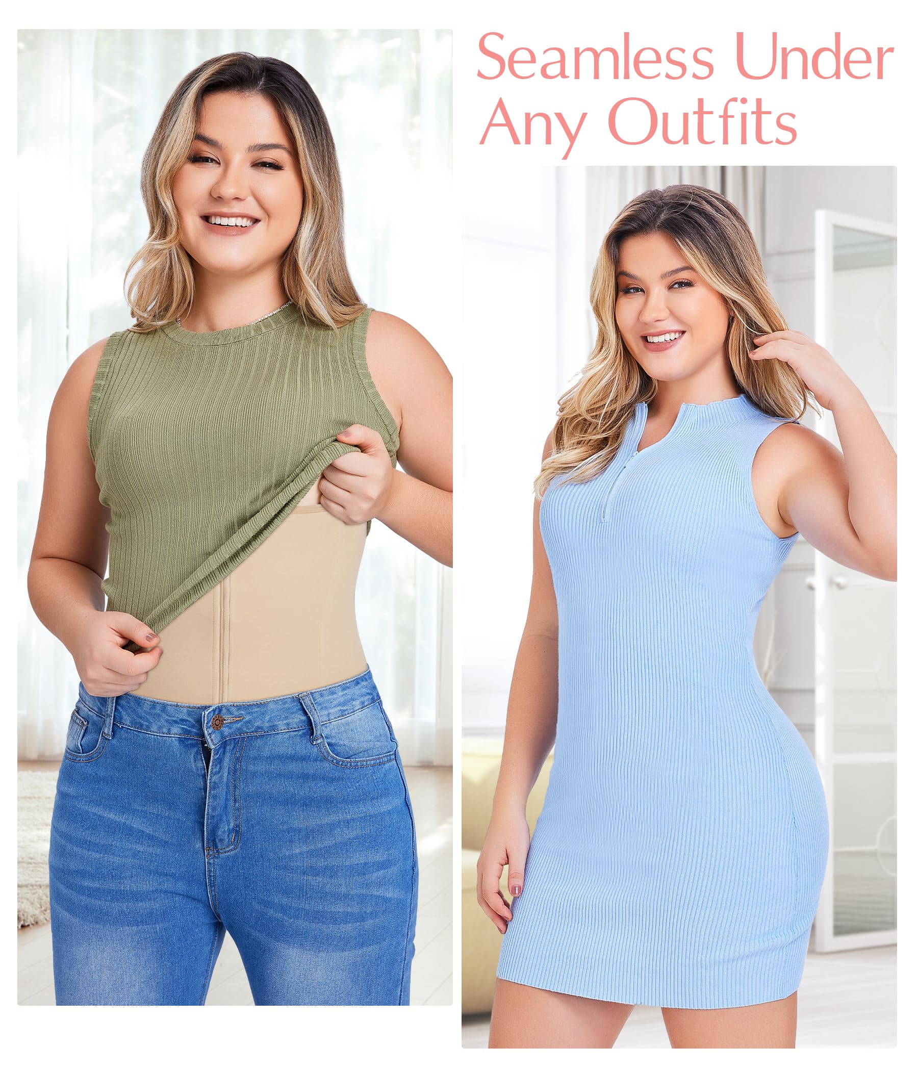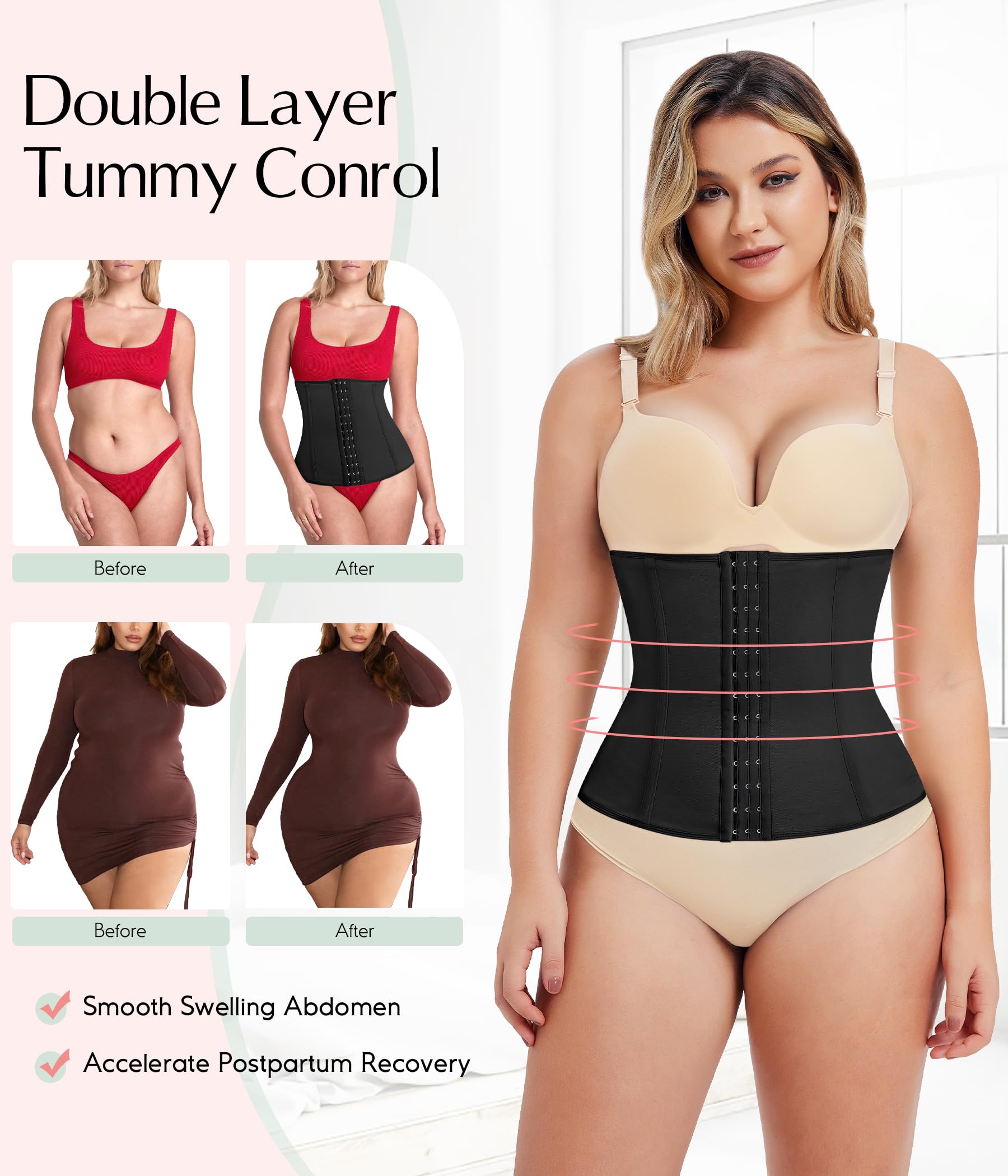 - BODY SLIMMING CORSET WAIST TRAINER: Our tummy control shapewear can hold your belly, reduce waistline, create instant slim curve to achieving the hourglass figure. Inner with adjustable 3 rows of hook and eye closure, the waist trainer for women lower belly fat is widely enough to wrap the whole abdominal area in different stage effectively. Outer plus with durable zipper, double control to flatten and tighten the tummy, giving you immediate slimming effect to enhance your natural curves.