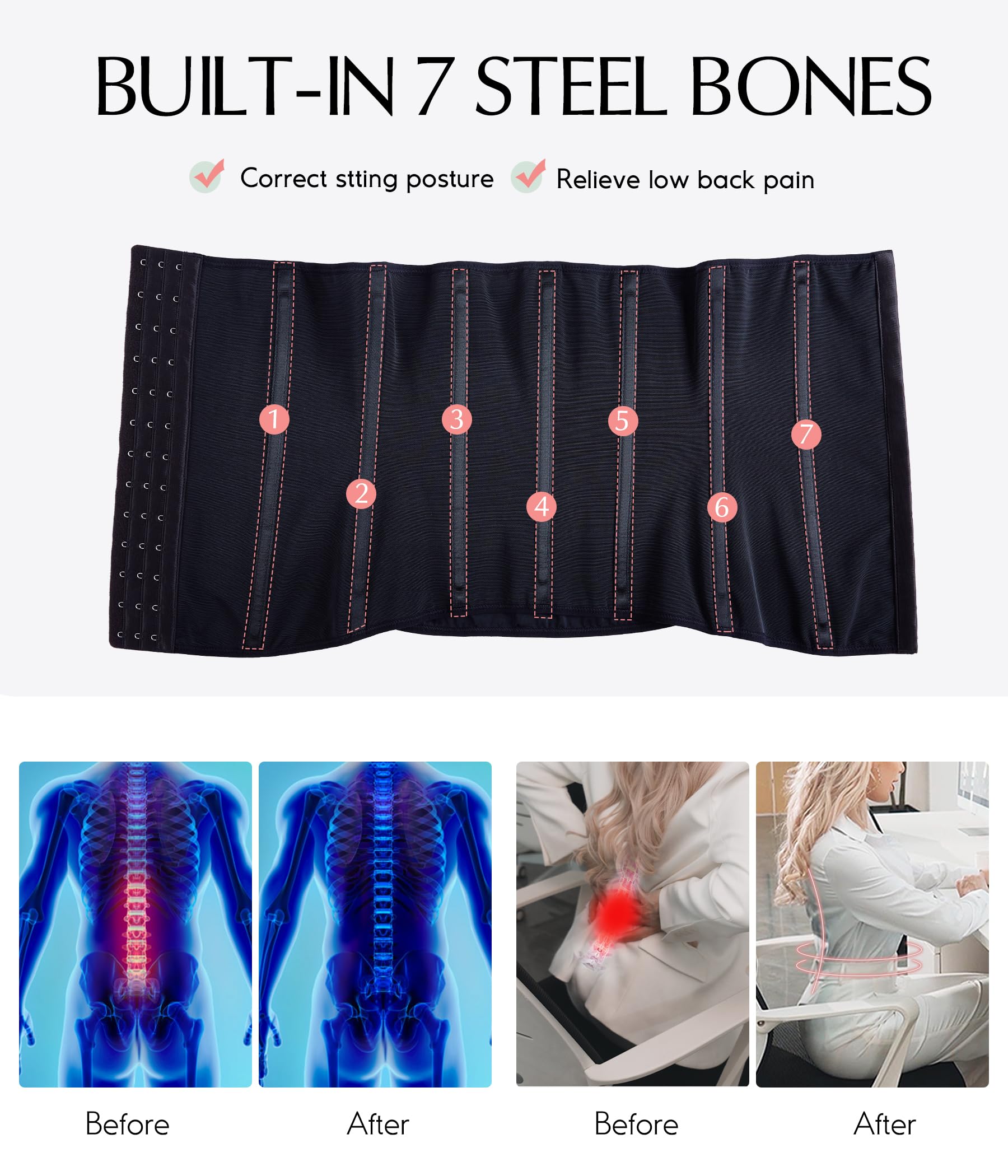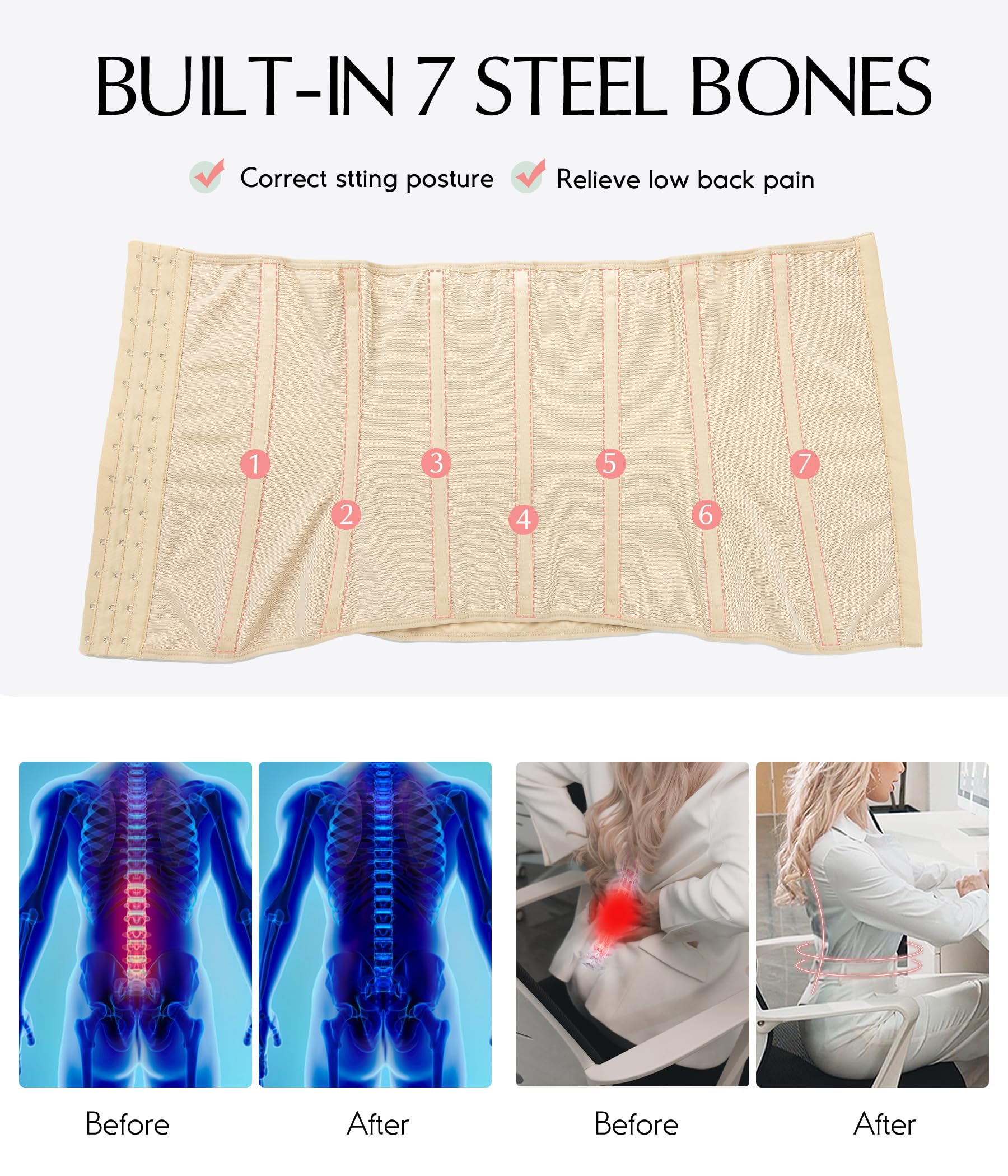 - STRONG SUPPORT LOW BACK SHAPEWEAR: The shapewear for women tummy control equips with 7 spiral steel bones fitted to curve naturally, encouraging an upright posture all time without rolling up and down, no matter you're doing housework, working, or exercising. Back fat shapewear provides all-around support and pressure to the waist area, control the flabby back, evenly distribute pressure along the back to relief back pain and improve hunchback, so as to achieve a more elegant appearance.