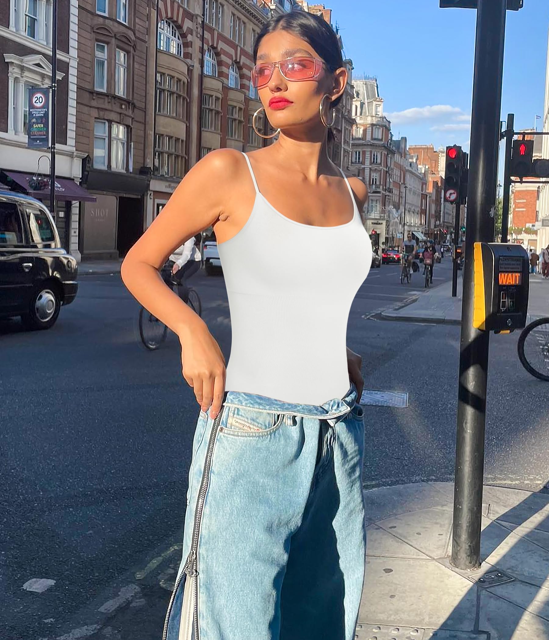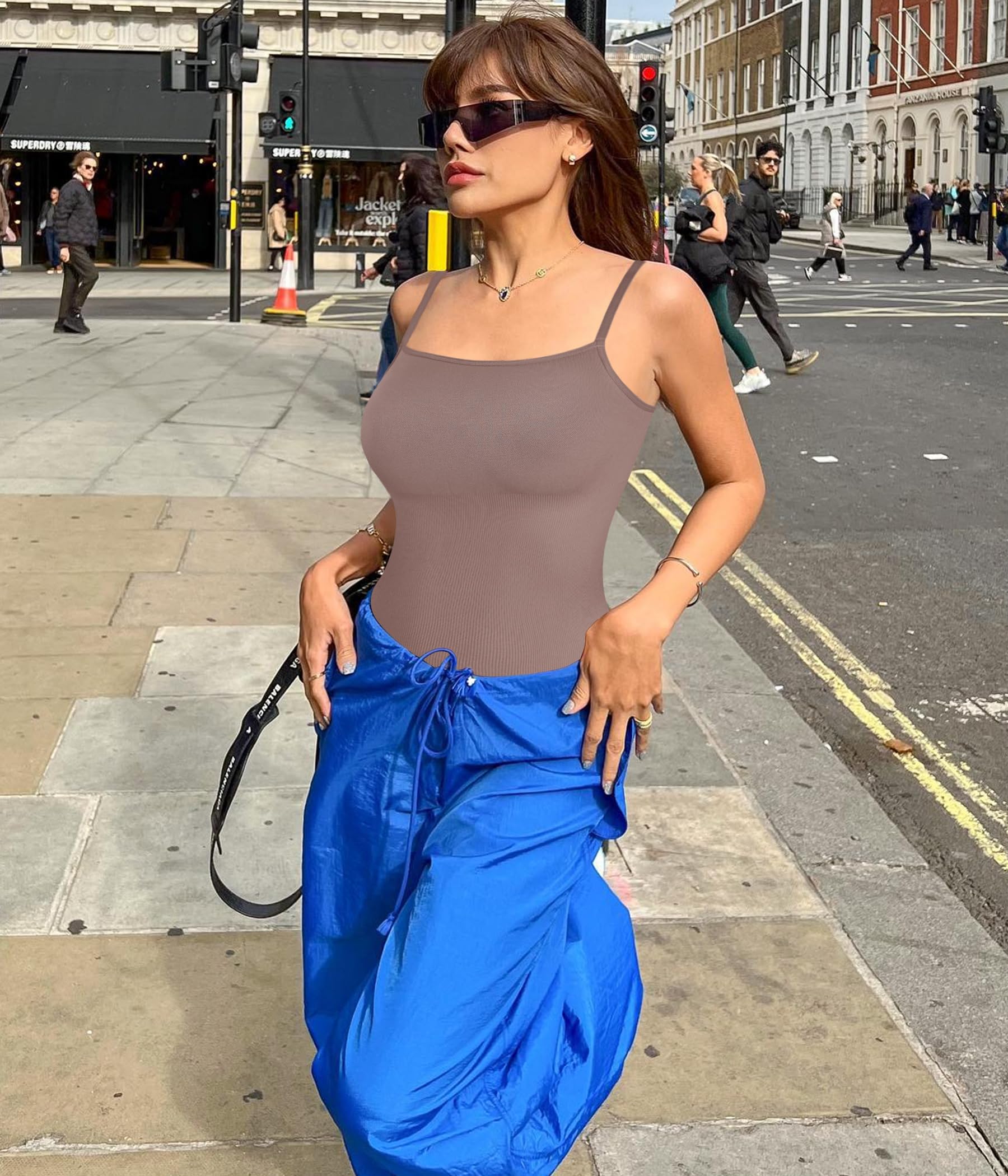 - WOMEN'S SQUARE NECK SLEEVELESS BODYSUITS TOP: Basic bodysuits for women is in a stretchy material with a nice square neckline,sleeveless and a figure hugging fit.The square neck cami tank style body suit is cute and perfect for going out,clubwear or just casual daily wear fashionable and unique,square neck bodysuit for women can also trim and elongate your face shape,increase feminine charming and confidence.