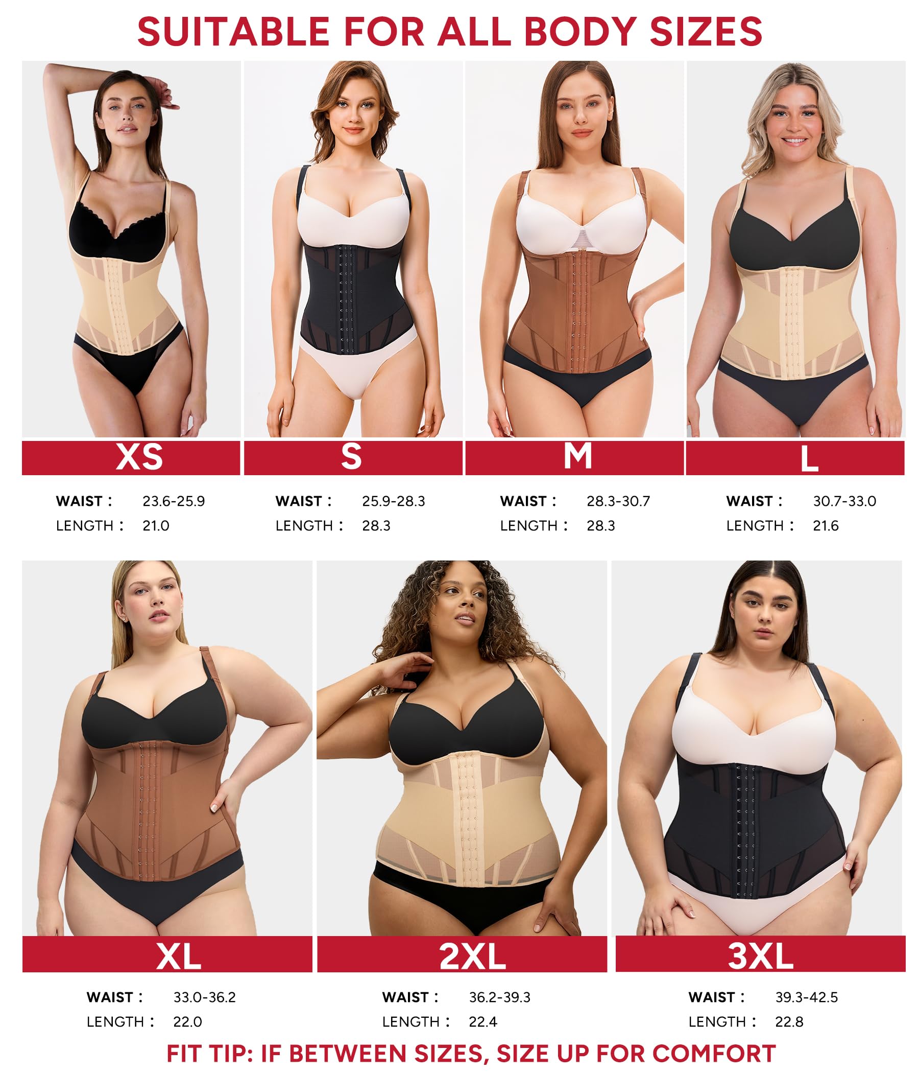 - Compression Corset Shapewear Meets Comfort: Crafted from 72% Nylon and 28% Spandex, this women's waist trainer offers excellent stretch, rebound, support,and control. The lightweight mesh fabric is breathable and skin-friendly, delivering comfort and consistent compression. This waist shaper contours your curves ,can be worn all day comfortably. Ideal for daily waist training, this waist trainer corset helps you sculpt a confident, feminine silhouette with lasting comfort and support.