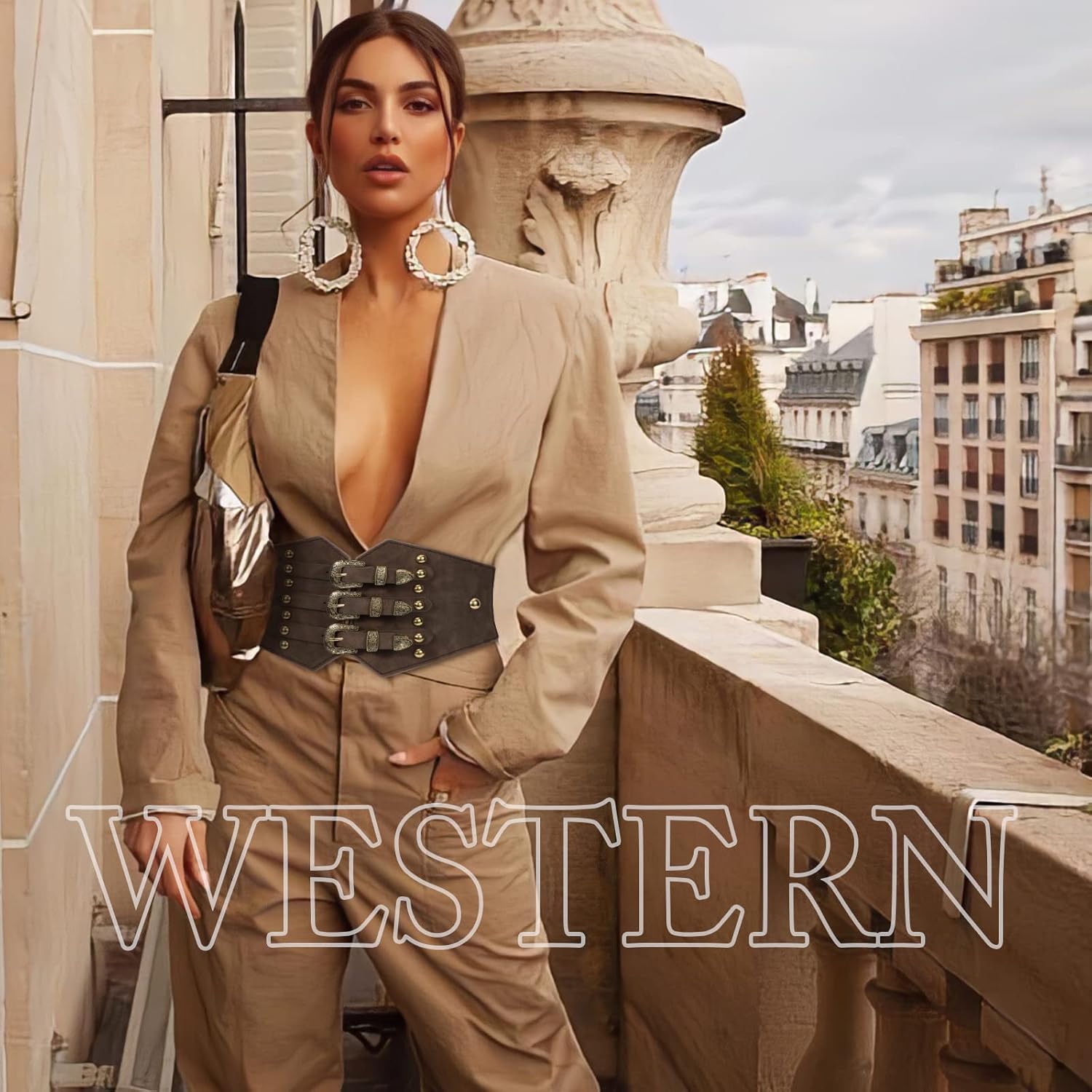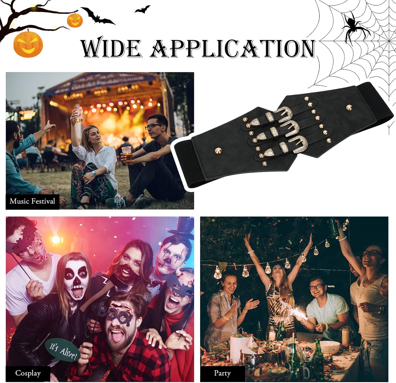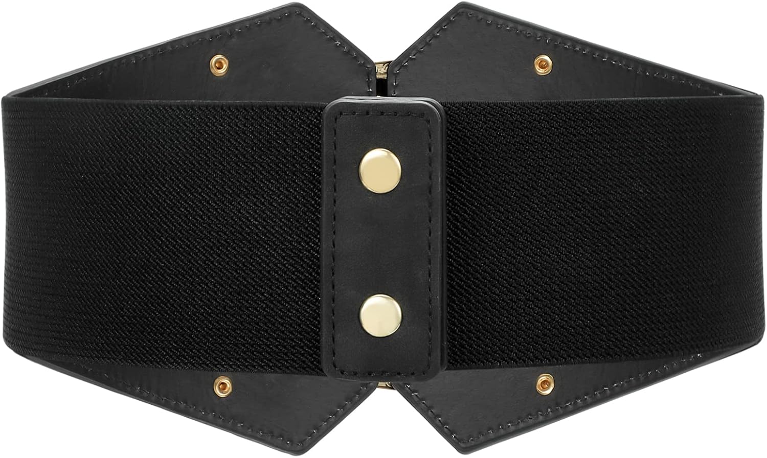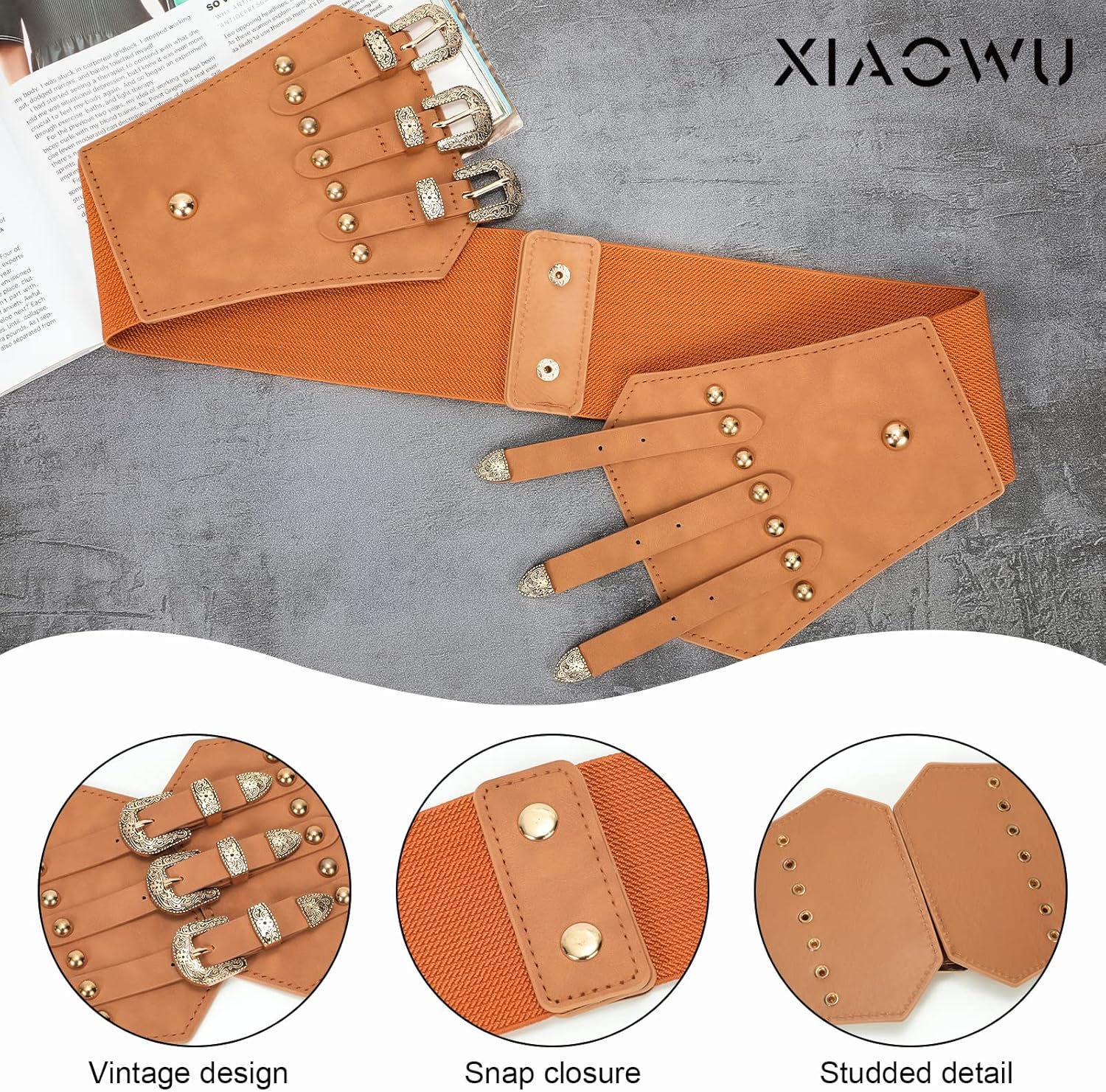 - Leather Corset Belt: Made from high-quality leather and featuring intricate detailing elastic bands, this stretchy waistband is comfortable and durable, This thick waist belt feature with flat studs decorated, classic western Embossed buckle in the front, snap button on the back makes it easy and convenient to put on and take off.