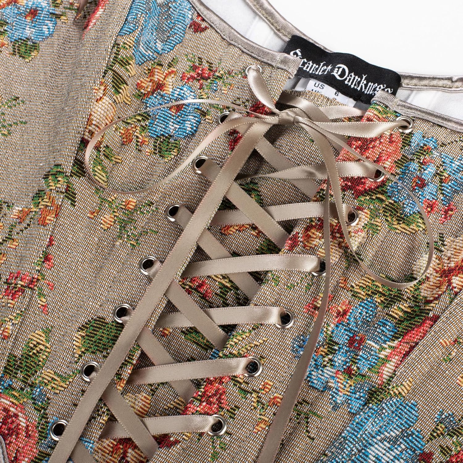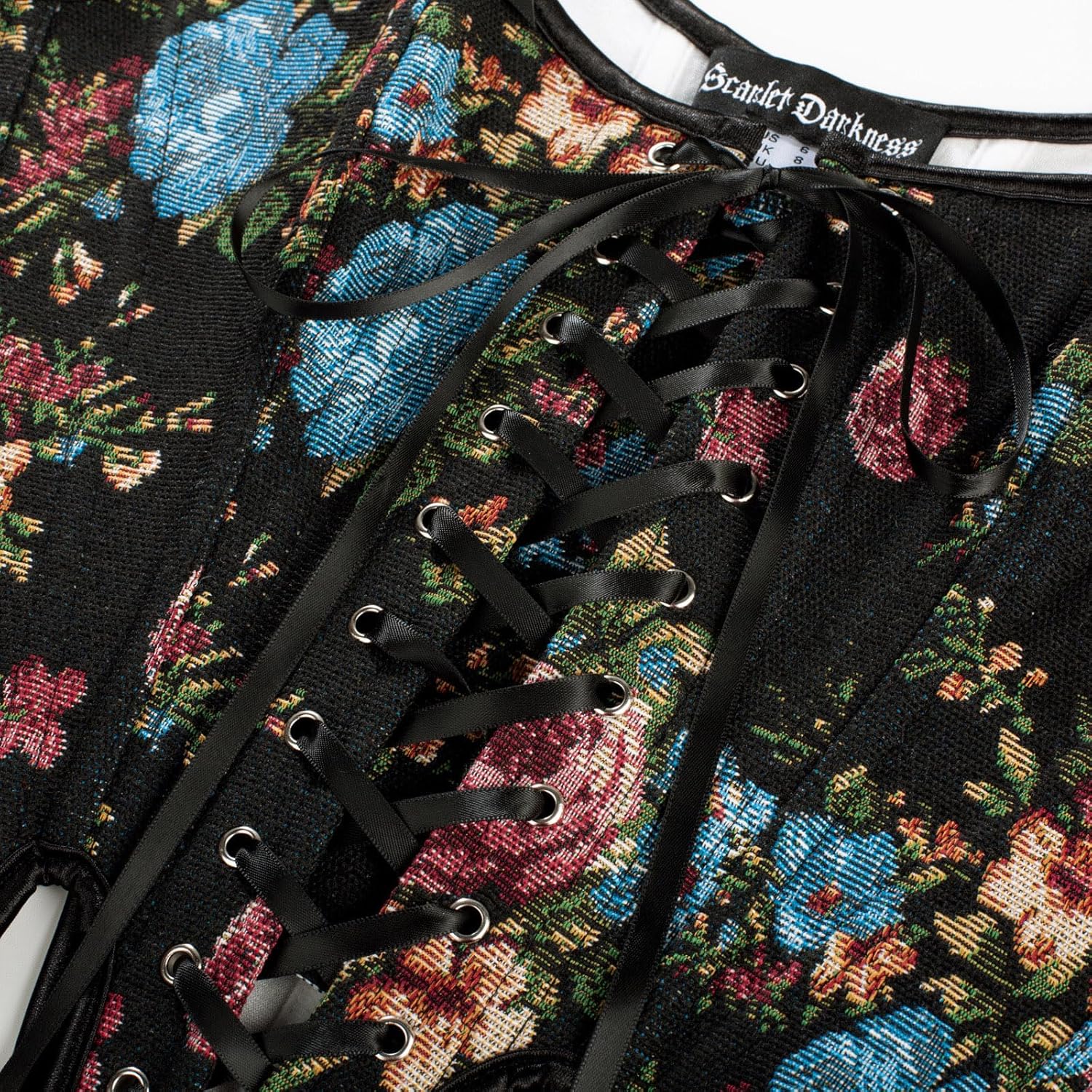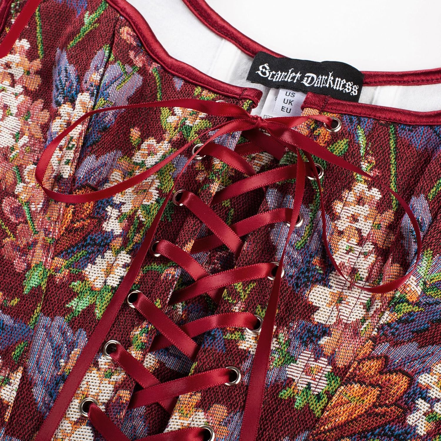 Scarlet Darkness Corset Tops for Women Renaissance Corset Floral Lace Up Bodyshaper Bustier
