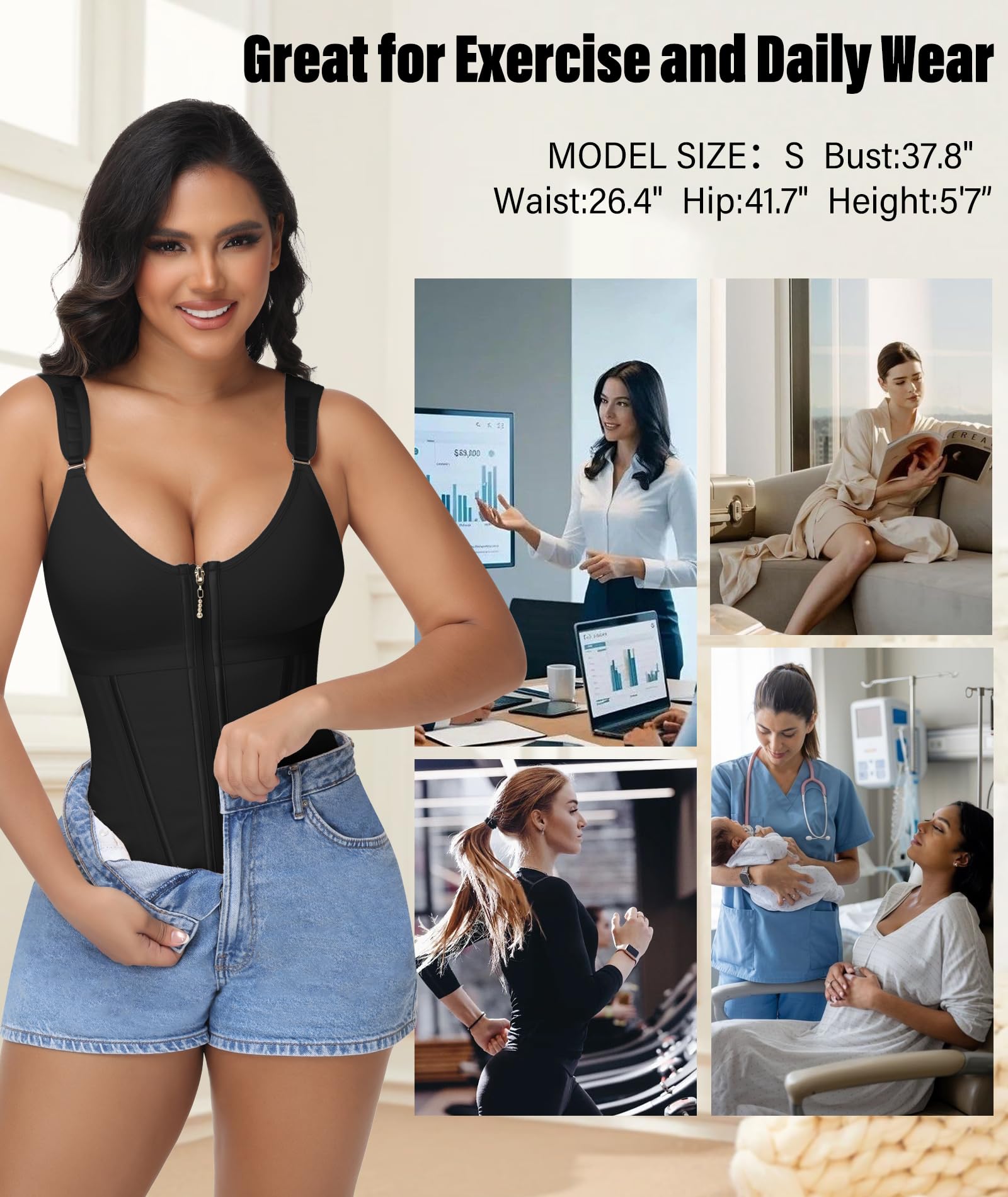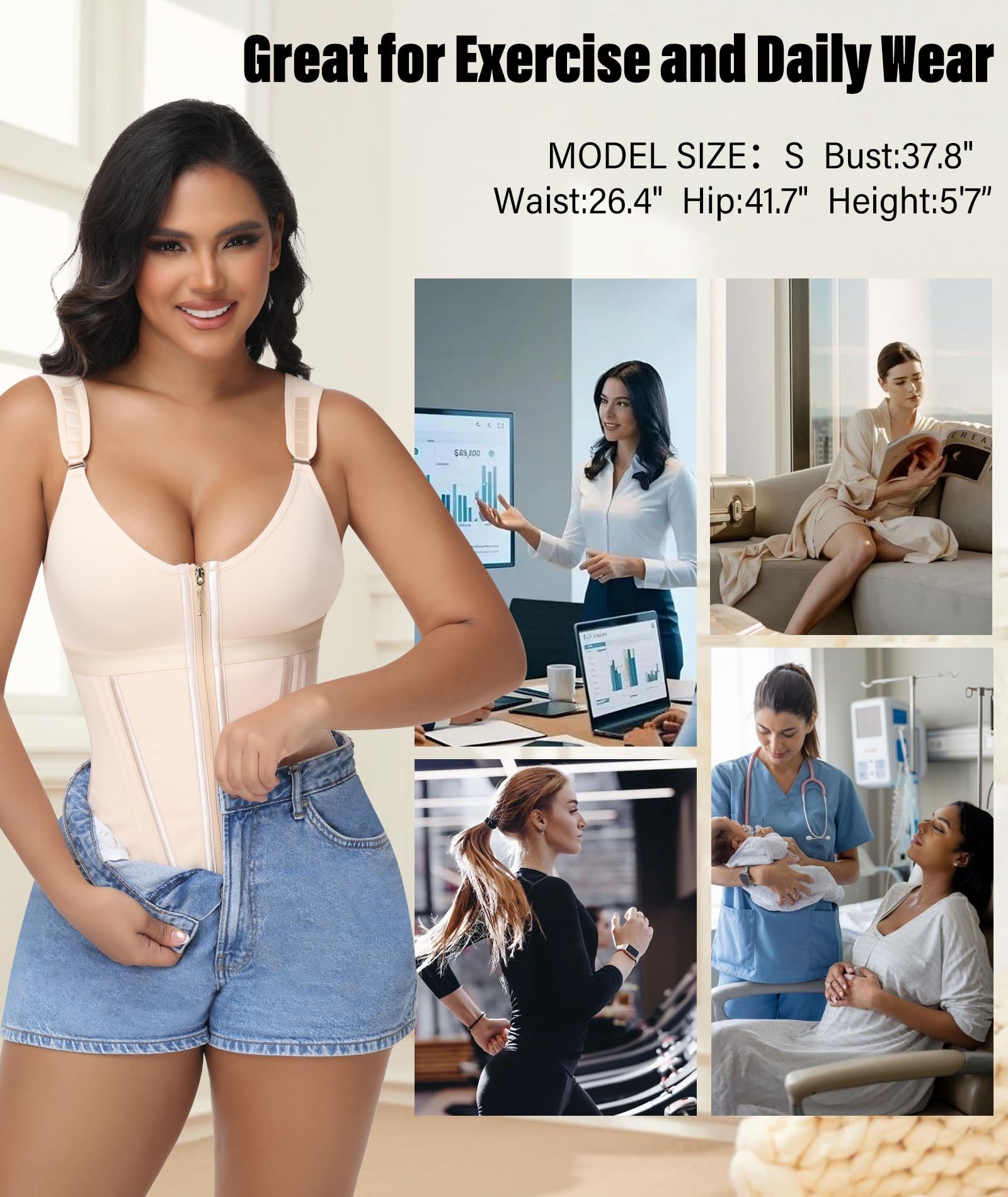 - 【Adjustable Corset Belt】 Designed with a high-quality zipper and a three-row adjustable hook closure, this waist trainers for women belly fat allows you to customize the compression level freely. First, use the closure for fine-tuned precision to find your ideal fit. Then, the zipper secures the initial flattening effect and helps prevent bulging. This dual-control system ensures stable, non-shift compression, allowing you to achieve anything from gentle shaping to powerful contouring.