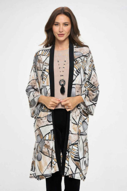 Make a polished impression in this long contrast jacket featuring quarter-length sleeves and functional pockets. The longer silhouette offers flattering coverage, while the soft stretch fabric keeps it light and breathable. Designed with an eye for clean lines and practical details, this jacket is a versatile outer layer. Made in the USA.