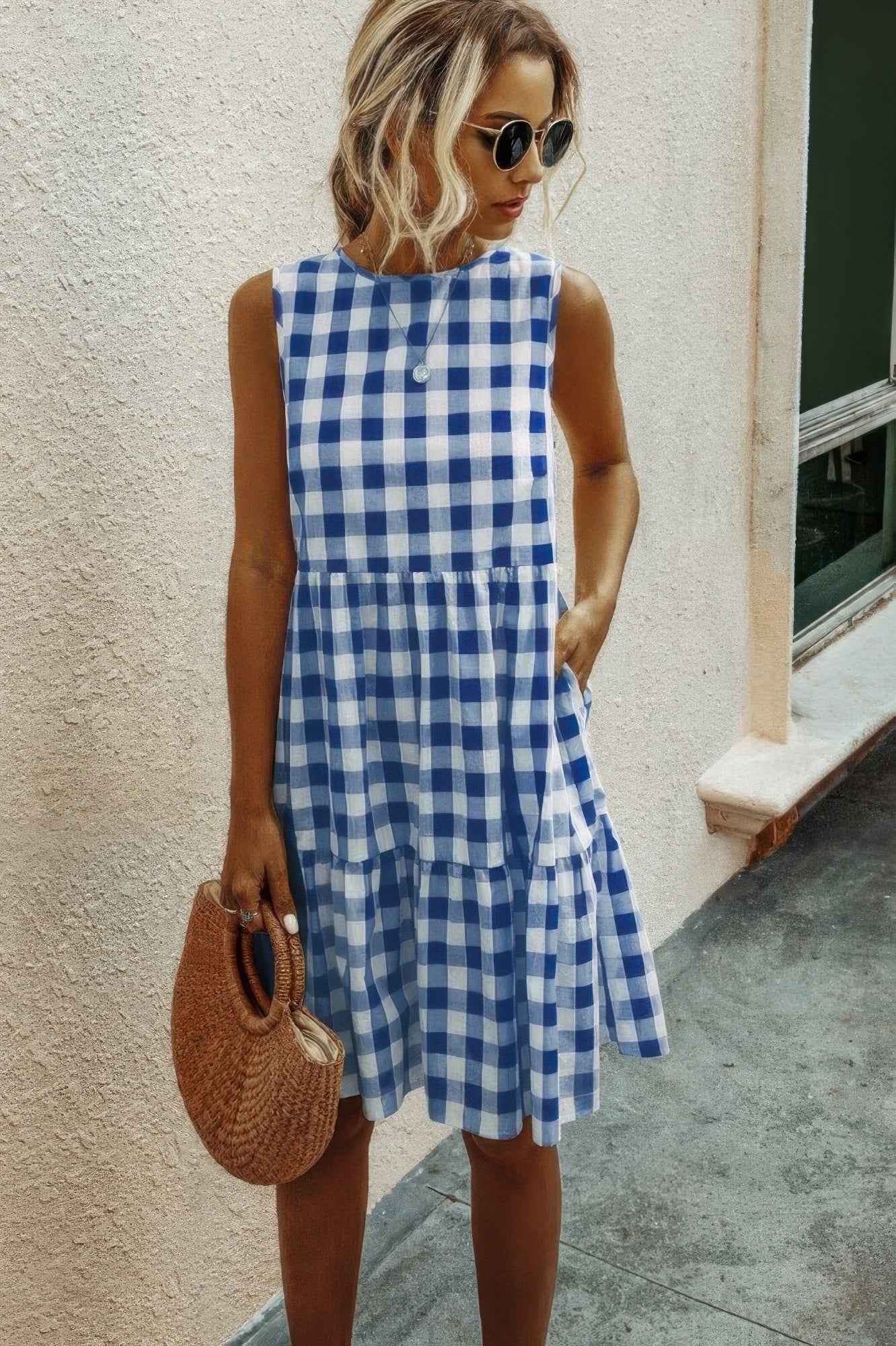Plus Size Plaid Sleeveless Robe Vests A Line Dress – Stylish & Comfortable – New Arrival Now Live