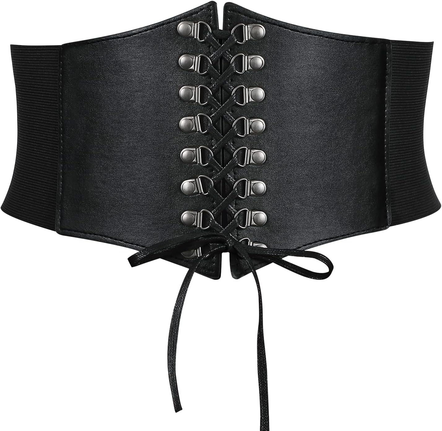 WHIPPY Women's Lace-up Corset Elastic Waist Belt, Tied Waspie Wide Belt for Women Halloween Costume
