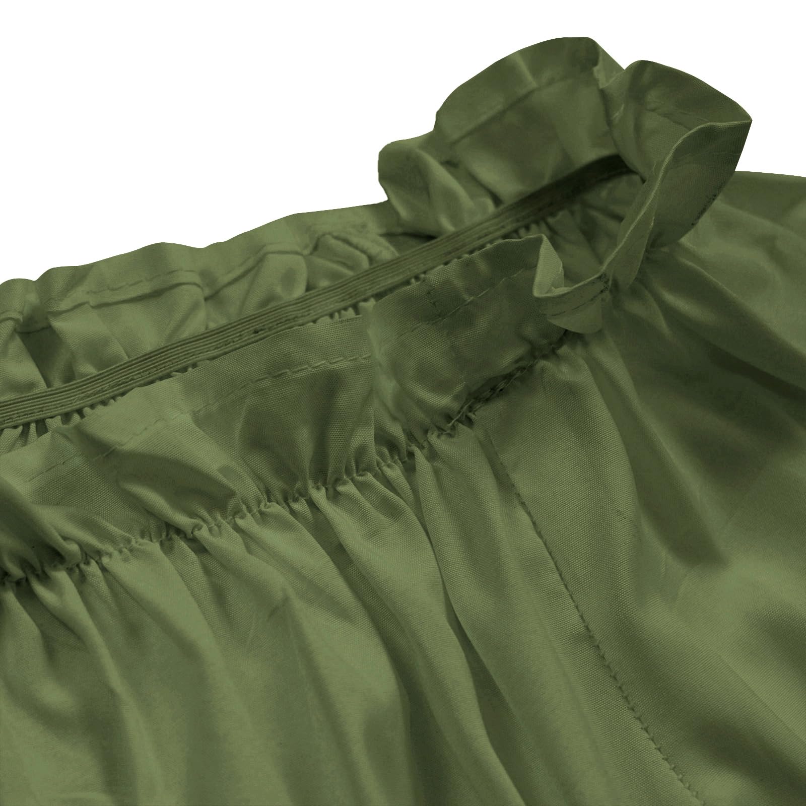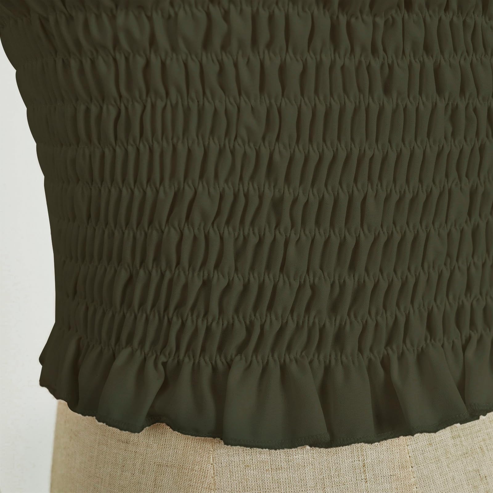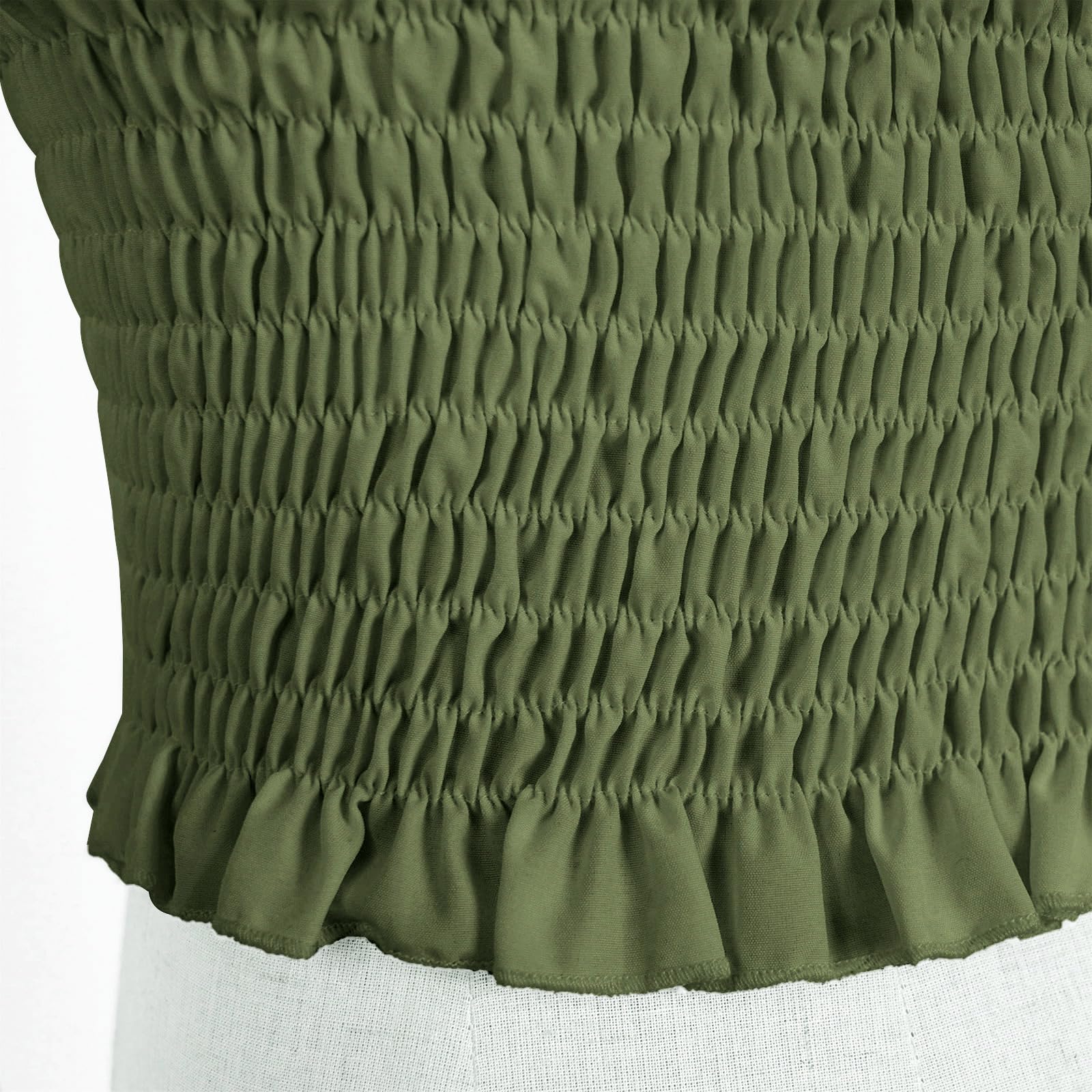 - DESIGN:Off the shoulder design can be worn on or take off, Long trumpet sleeves, ruffle neck and cuffs, Elastic high smocked waist, soft and comfortable fabric.