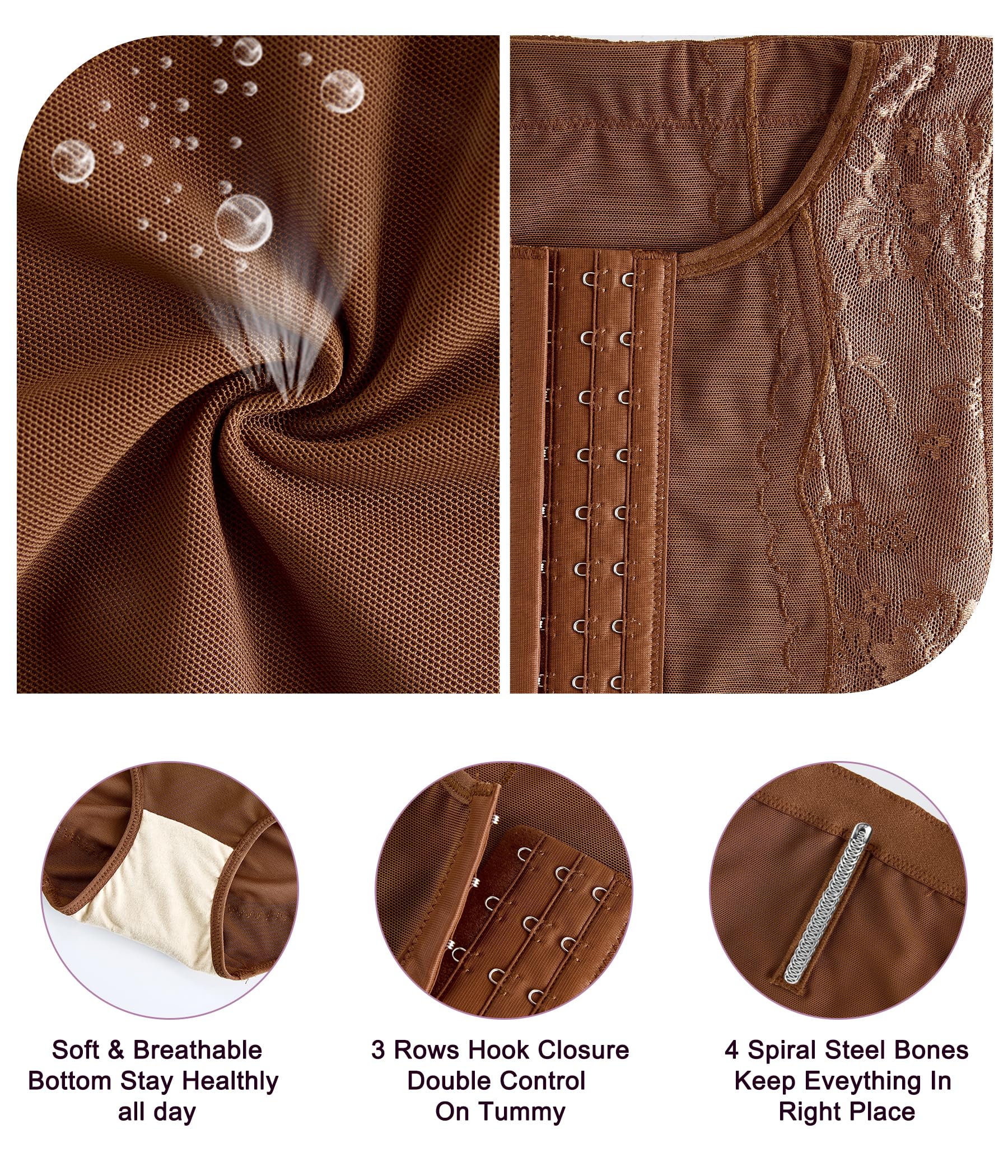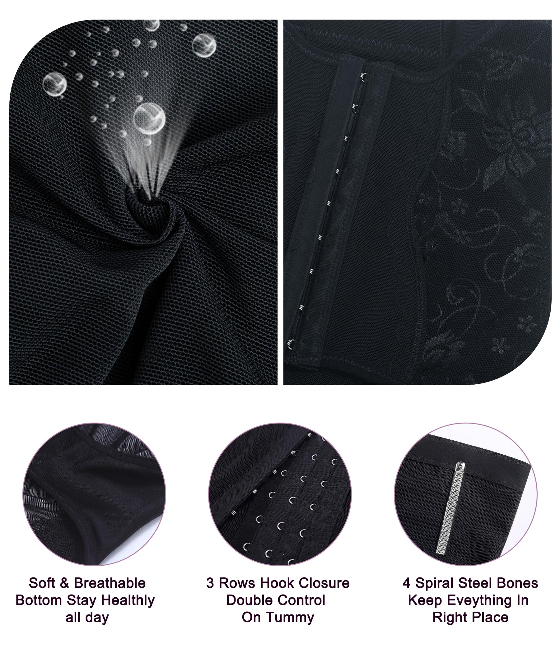 - STRONG BACK SUPPORT AND FIRM CONTROL: The shapewear for women with 4 spiral steel bones provide back support,helps relief lower back pain and corrects posture, keep the girdle from rolling,shape you perfectly all the time like a full bodysuit top. Or you can use it as postpartum recovery girdle,to reduce swelling and wound pain, speed up incision healing.