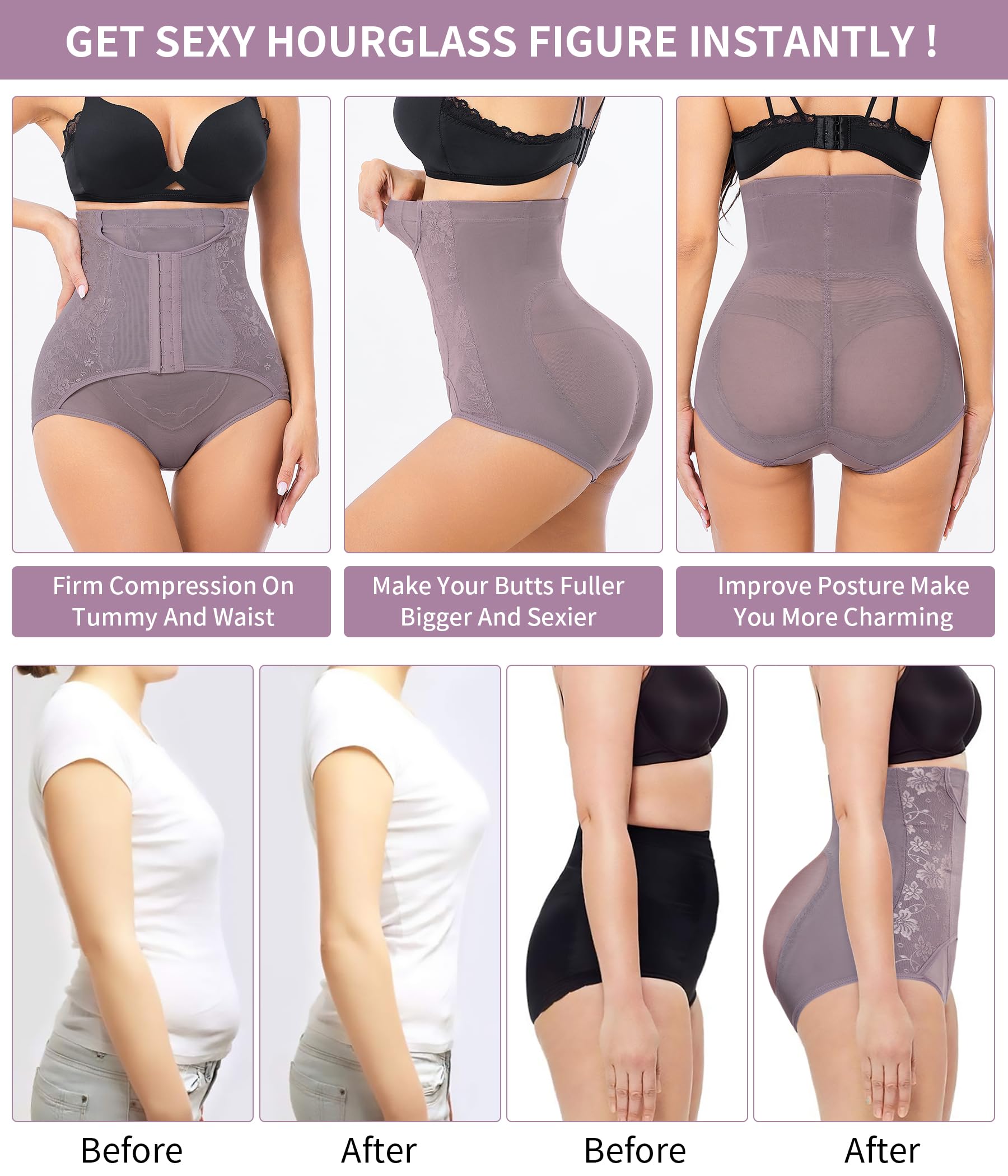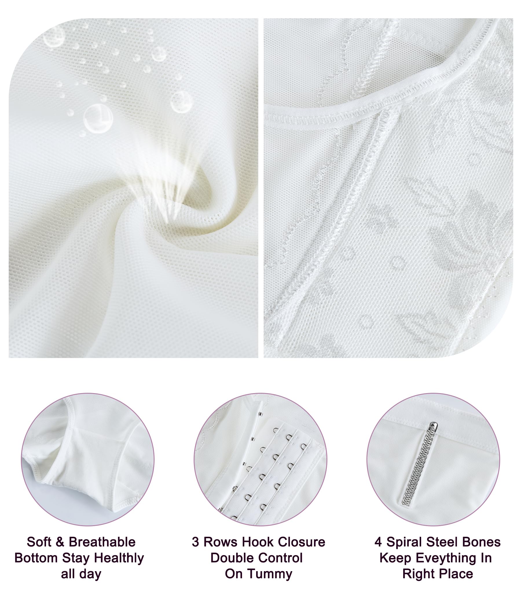 - TUMMY CONTROL PANTY AND WAIST SLIMMER: High waist corset shapewear designed for women postpartum girdles corset can flatten belly fat with moderate control,hold our stomach in. High elastic fabric and 3 row adjustable hooks of the shapewear underwear fits any body shape,provide higher compression on tummy, reduce waistline, smooth bumps and bulges,give us a hourglass figure.