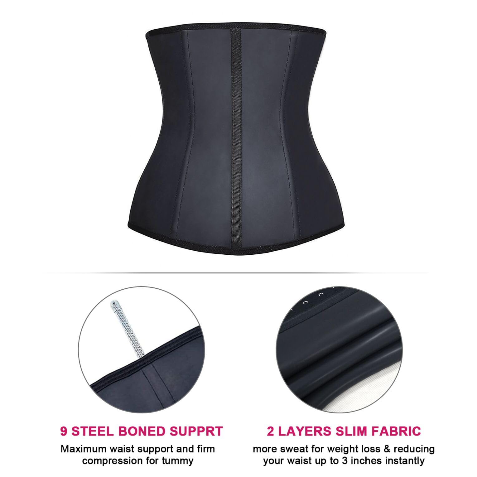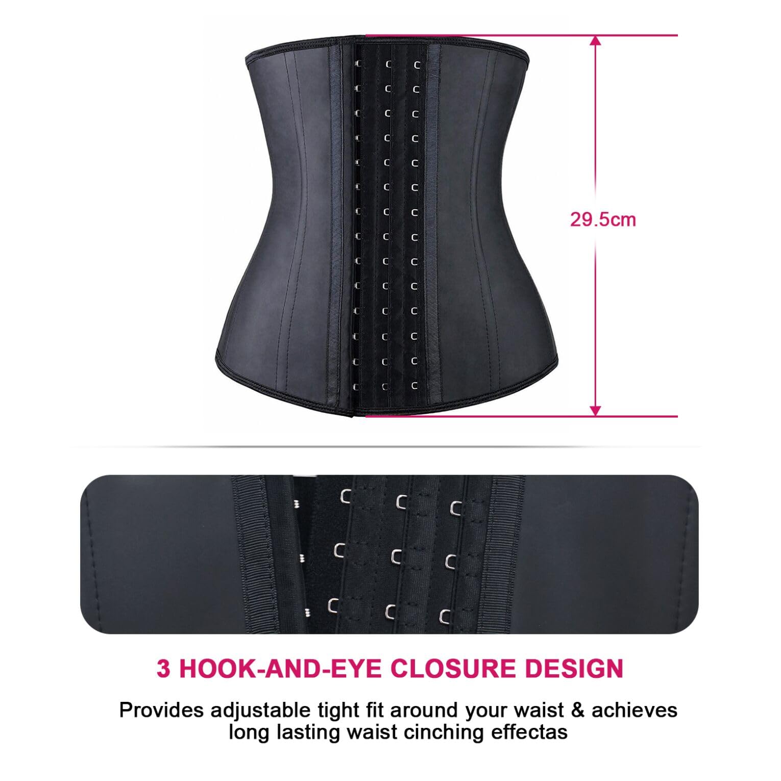 - ►Latex Waist Trainer Shapewear: Big and wide 3 columns hook-and-eye closure classic design, allow you to adjust size as necessar, make you Slim and Beautiful. 9 or 25 Spiral steel boned for waist cincher support and keep you in best posture which is flexible and durable, as soft as plastic bones, can bend easily but recover quickly to origin; If you worried about steel boned or not, you can test it with a magnet ; Can be used for yoga, postpartum belly abdomen corset etc.